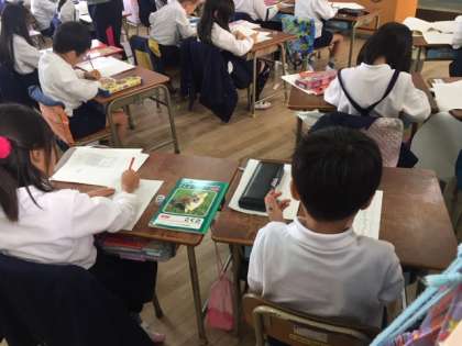 ワークシートに小さい文字でたくさんの文を書いている子も多く、感じたことや考えたことを文章で表現する力の伸びを感じました。