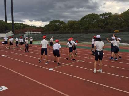 コートが狭いのとフリスビーの飛び方が予測しにくいため、どんな子でも当てやすく楽しんでいました。