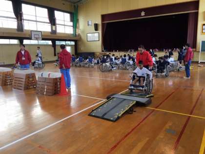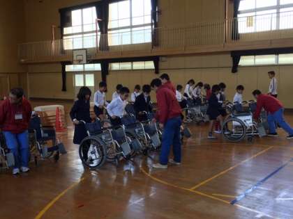 今日は総合学習の一環でゲストティーチャーをお迎えし車いす体験がありました。