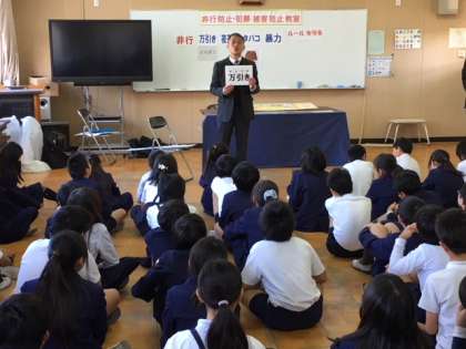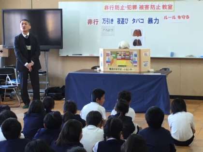 万引き、夜遊び、タバコ、暴力の非行に走らないようについて、ルールを守ることの大切さについて話してくださいました。