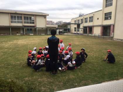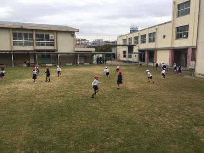 本日より転入生が来たので、その歓迎会ということで、中運動場でおにごっこをして交流を深めました。