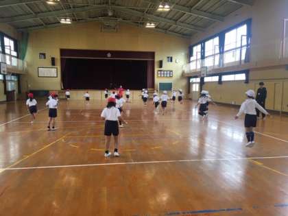 前跳びを中心にリズムに合わせて跳ぶ練習をしました。