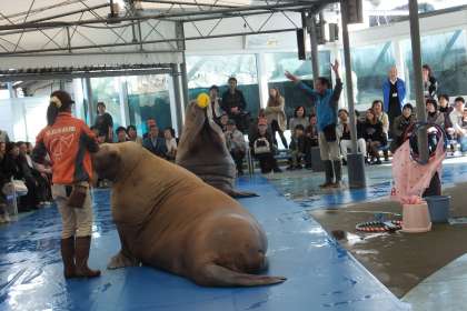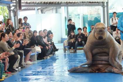 体重が800キログラムもある大きなセイウチがかわいくコミカルな演技で笑わせてくれました!!