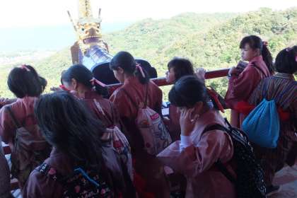 お城は色鮮やかで、とても立派でした。天守閣からは、伊勢湾の向こう側の渥美半島まで見えました!!
