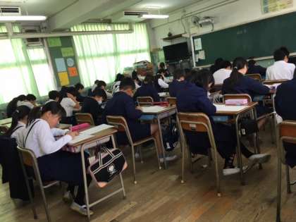 静まりかえった教室からは、ページをめくる音と鉛筆で書く音だけが聞こえていました。
