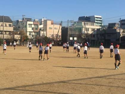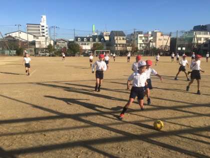 クリスマス会の一環で、運動場でサッカーをしていました。