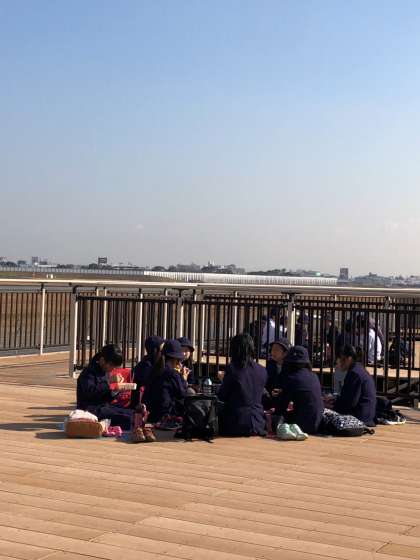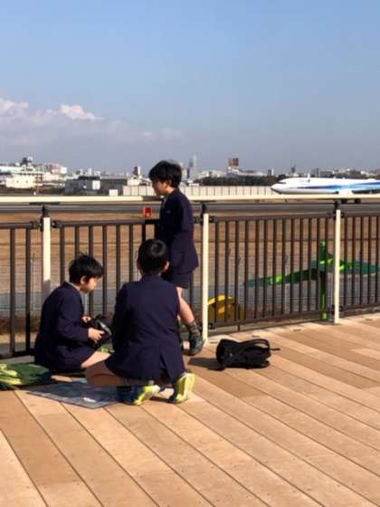 晴天の中、楽しく飛行機を見ながらお弁当を食べました。