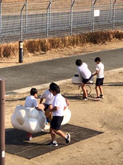 食べた後はスカイパーク内の遊具で遊びました。