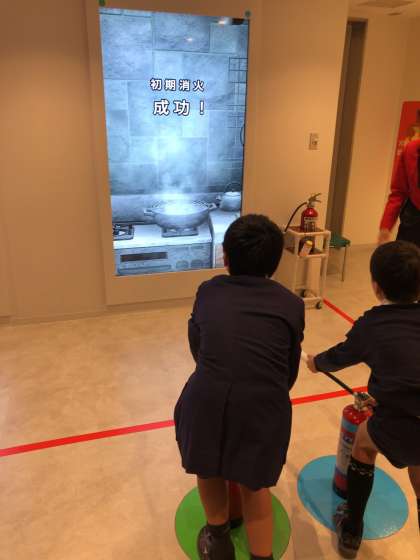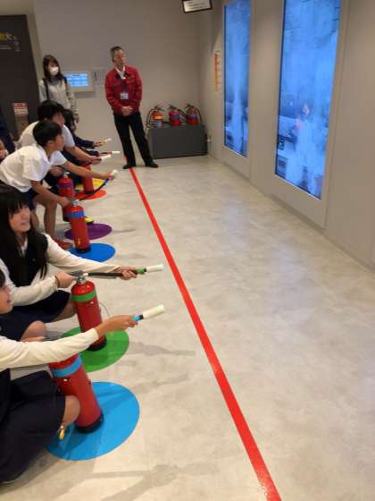 タスカルシアターでは、津波などの映像を観てから、減災学習として初期消化の仕方、火事ということを周りの人に伝えることを学びました。