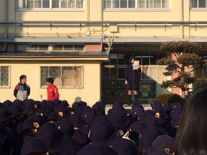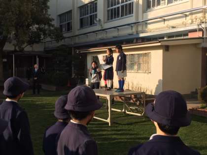 今日は火曜日ですが、週はじめということで児童朝会がありました。