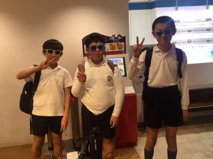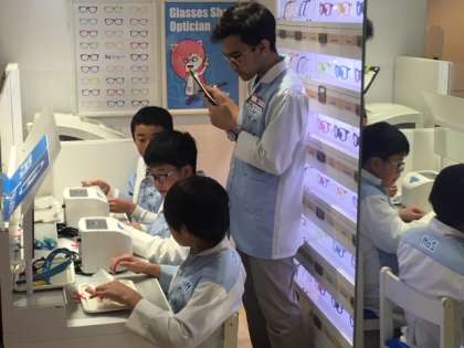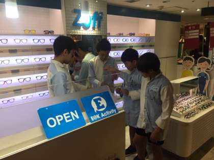 メガネ作りでは、スタッフが外国の方で、説明のスピードが速くて子どもたちもタジタジでした。