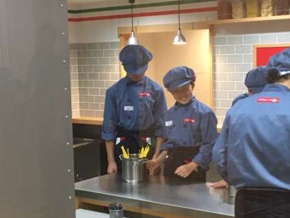 昼食後も食べ物作り体験をして、できあがったものを美味しそうに食べていました。