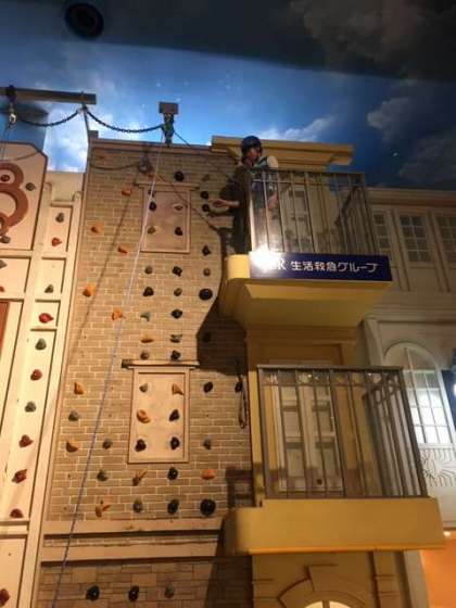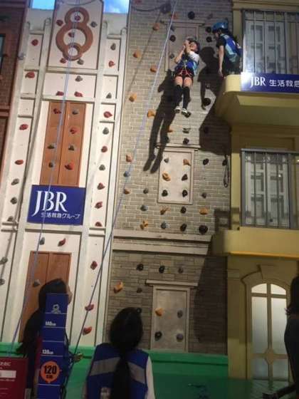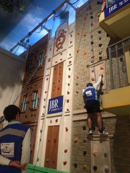 クライミング体験では3階分もある壁を頑張って登っていました。