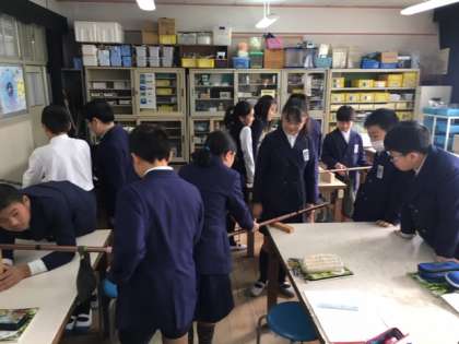 力点や作用点をどこにすれば、より小さい力で重りを持ち上げられるのか実験通じて考えました。