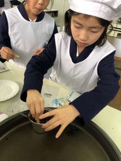 板チョコを溶かしたのですが、温度が上がり過ぎるとダメなので、その加減が難しかったようです。