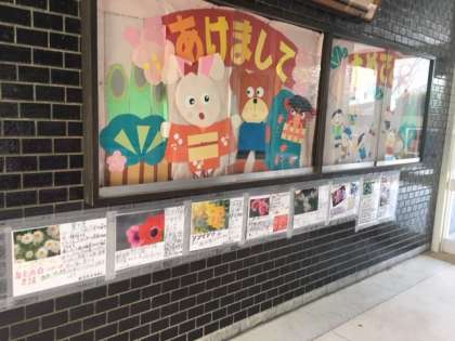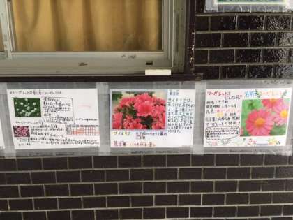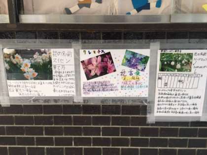 ?今玄関には飼育栽培委員会が作成した花の紹介が掲示されています。