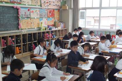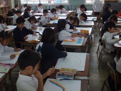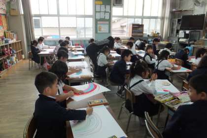 子どもたちは、「できたらいいな、こんなこと」をテーマにクレヨンを使って自由に描いています。虹に乗ったり、海の中を自由に泳いだり、夢いっぱいの作品が出来上がりそうです!!