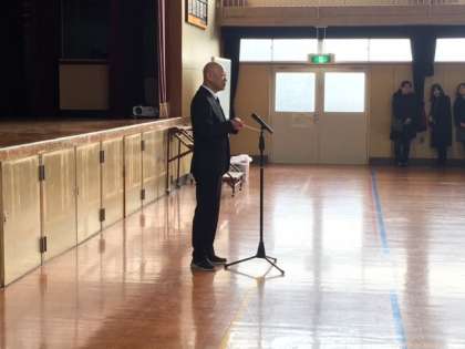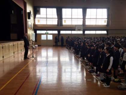 今朝の児童朝会では、校長先生より給食週間にちなんだ話がありました。