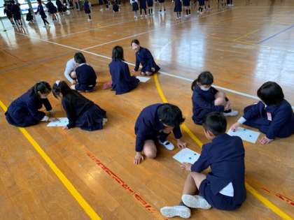 2年生は講堂で韓国・朝鮮の伝統的な遊びを体験しました。