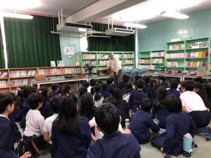2つの体験が終わった後は図書室で、地域の方から懐かしの道具の話や、子供のころの生活についてお話を聞きました。