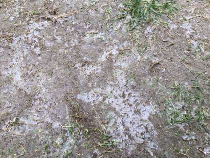 昨日から1段と冷え込んだこともあり、今朝の中運動場では霜がおりたような状態になっていました。