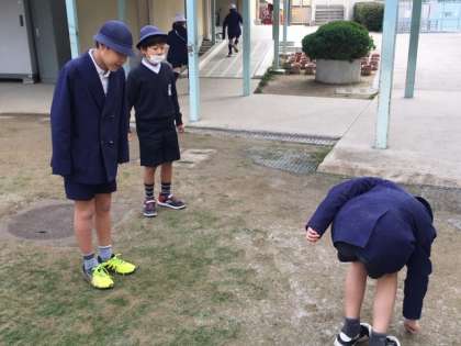 子どもたちの中には「凍ってる〜!」と言いながら珍しそうに見ている子も。。。小さな変化に気づいたところが素晴らしいですね!
