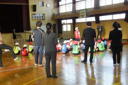 この日は、小学校教育研究会体育部の検証授業として実施され、他校からもたくさんの先生が参加されました。
