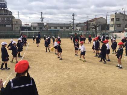 ドッジボールでは取ったボールを園児に譲ってあげる姿も見られ、少し上級生になる自覚が出てきたのかなと嬉しく思いました。