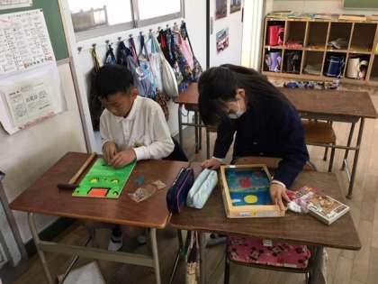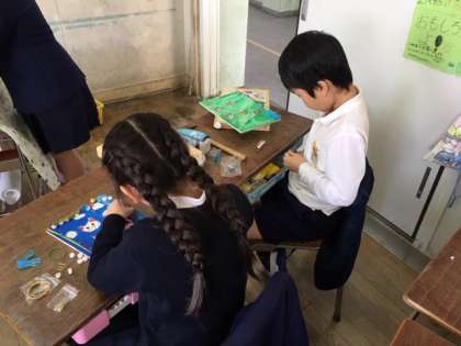 クギをどこに配置するかあれこれ考えながら、金づちで打っていきました。