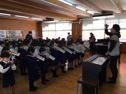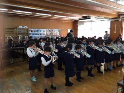 学年全体で「こいぬのマーチ」の練習をしました。