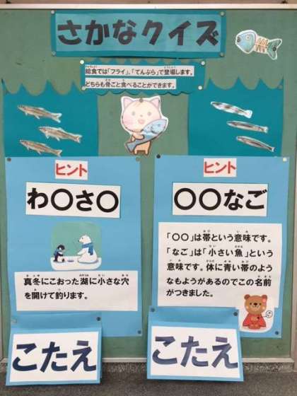 今回は、給食に出てくる骨ごと食べられる魚の名前を当てるというものです。
