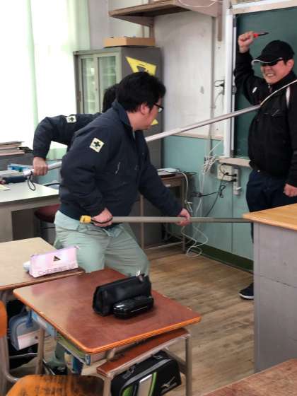 今日は6年2組の教室に不審者がナイフを持って侵入したことを想定した防犯訓練が行われました。