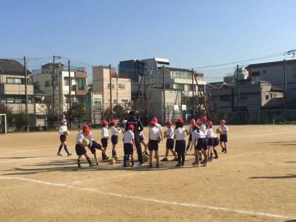 ボールに慣れる練習でリフティングをしていたのですが、サッカーが得意な先生の手本を見ていると、簡単そうにしているので出来そうな気がするのですが、実際にやってみるとあっちこっちにボールが飛んでいって、追いかけて行く子どもたちがいっぱいでした。