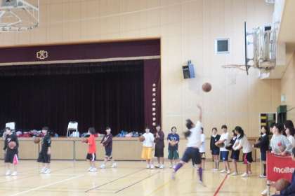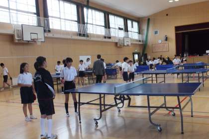 体育館では、卓球部・バスケットボール部・バレーボール部が練習していました。先輩の生徒がつきっきりで教えてくれる部や一緒に同じ練習をさせてくれる部があり、子どもたちはとても楽しそうです。