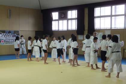 武道場では、少林寺拳法部と柔道部が練習していました。