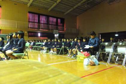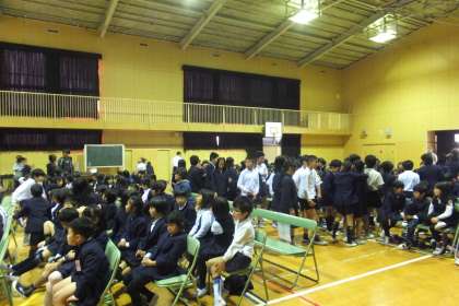 発表会当日は、見学者の皆様も最初の中学年の発表が終われば敬老席の方を除き一旦入れ替えをさせていただきます。低学年の発表後も同様に入れ替えを行いますので、ご協力をお願いします。
