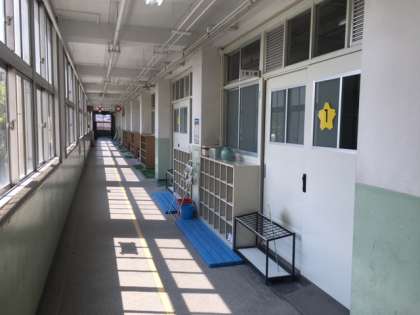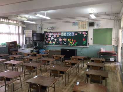つくえも いすも みなさんが がっこうにくるのを まっています。