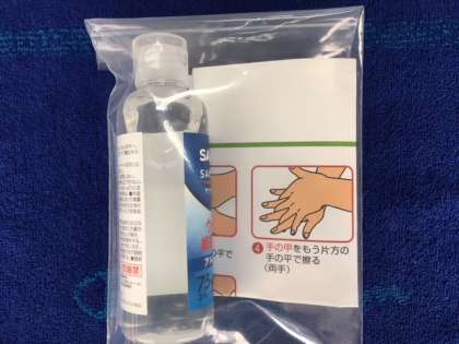 いただいたアルコール消毒液は、こどもたち全員に配り、記名させ学級で使用します。