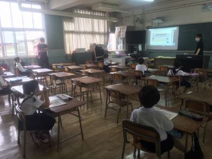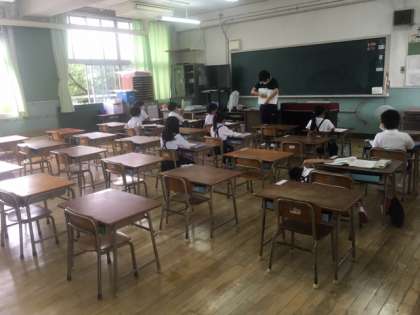 本校では今の分散登校の利点を生かして、学習始めのこの時期に少人数でよりきめ細やかな指導を行っています。