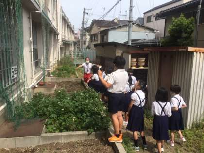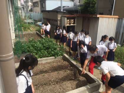 発芽の勉強をしているので、学習園で植物の芽を観察しました。