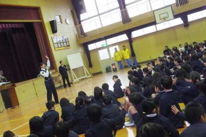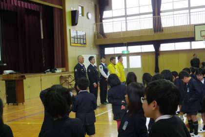 最後に、ラビット隊の方に今日のまとめをしていただき、交通安全指導は終わりました。