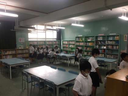昨日、委員会が発足されたことから、今日さっそく図書委員会が2時間目の後の休み時間に図書館開放をおこなっていました。
