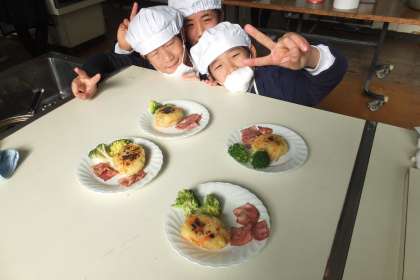 先日、実習風景を紹介しましたが、今日はその出来上がりを紹介します。どのグループも美味しそうに出来上がりました??