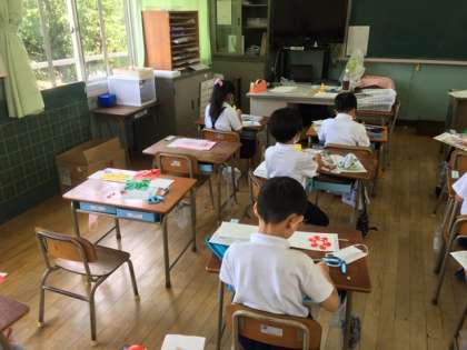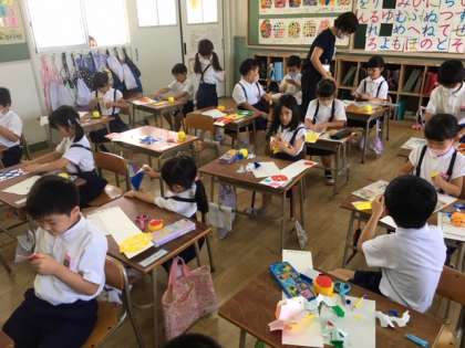 先日の2組同様、「ちょきちょきかざり」という工作活動をしていました。