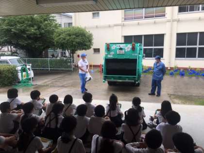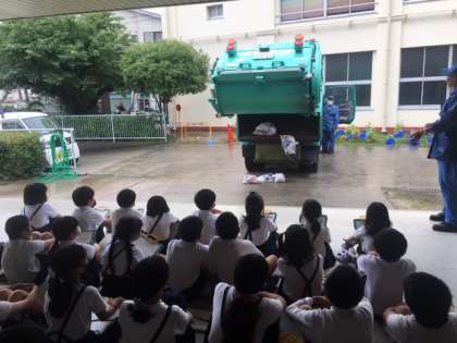 今日は環境事業局からゲストティーチャーを迎えてパッカー車体験がありました。