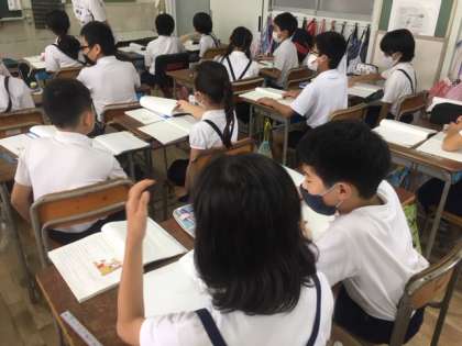 どこが山場になるのかをめぐって、たくさんの児童がそれぞれの考えを述べていました。