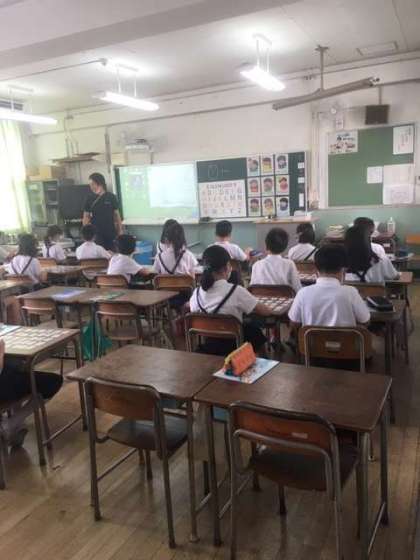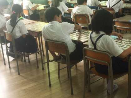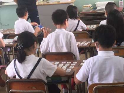 一人で練習したり、隣の児童と対決したりと楽しみながら単語を覚えていきました。