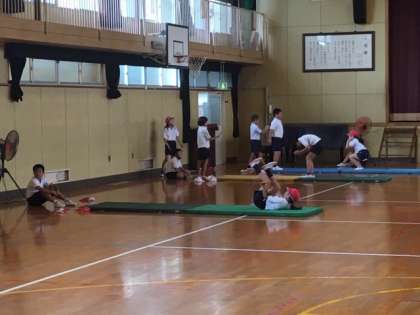 前半は前転など今までよく取り組んできたことを練習し、後半は後転を重点的に練習しました。