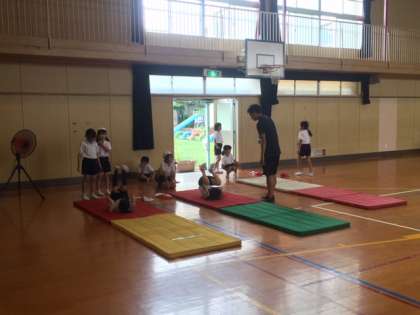 しっかりと手をつくことや、体を丸めることなど、一人一人先生からアドバイスを受けていました。
