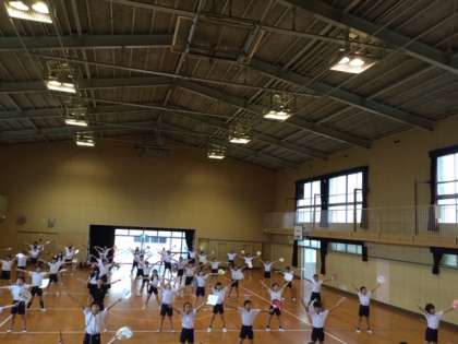 エイサーを踊るのですが、独特のリズムと足の動きにまだまだ苦戦しているようです。